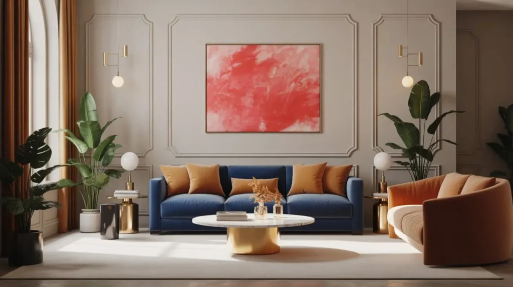 Colors set the mood. Match color schemes and mood with your walls and furniture. Contrast can make art pop. Use accent colors to brighten neutral rooms. Bold or neutral pieces depend on style preference. A balanced approach improves interior aesthetics and comfort and strengthens the emotional connection to décor.