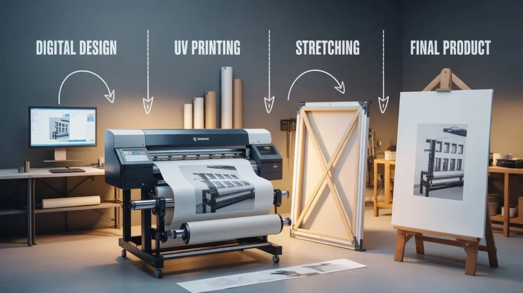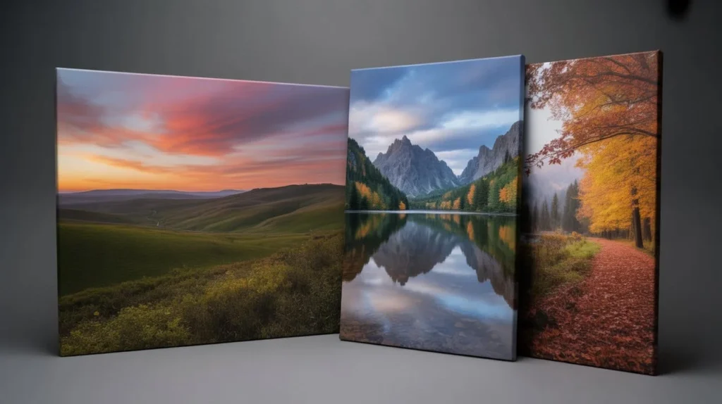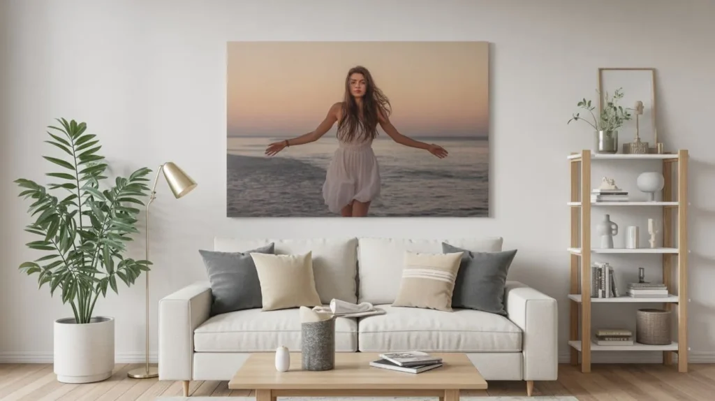 A canvas gallery wall tells a story. Mixing sizes creates rhythm. Family homes often combine portraits and travel images. Offices use branding visuals. This approach works well for canvas art for offices and homes alike.